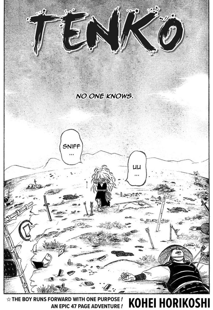 If you went back to 2007 and picked up the summer issue of Akamaru Jump, you would come across a one-shot by up-and-coming mangaka and college student Kohei Horikoshi. It’s set in samurai-era Japan, and follows a young boy with long, white hair and rough, cracking skin. He has the power to crumble anything he touches with both hands into dust, but he’s sworn to never use it on humans. The boy openly declares to hate the world, particularly warriors, and sets out on a path to destroy every tool of war. Both he and the work share a name: Tenko.