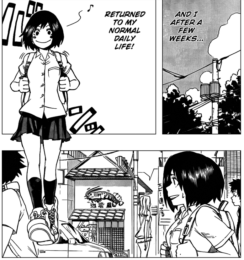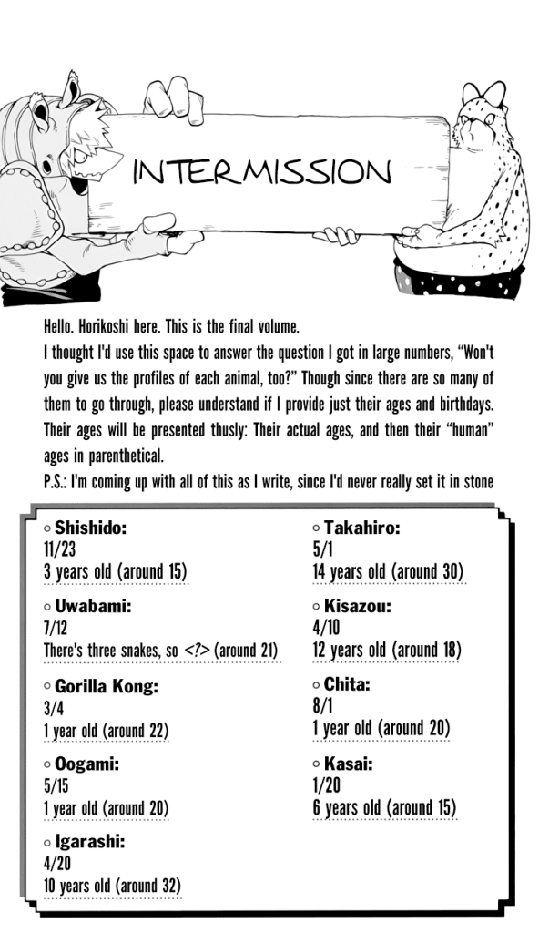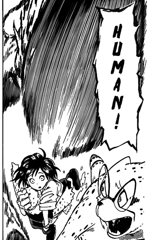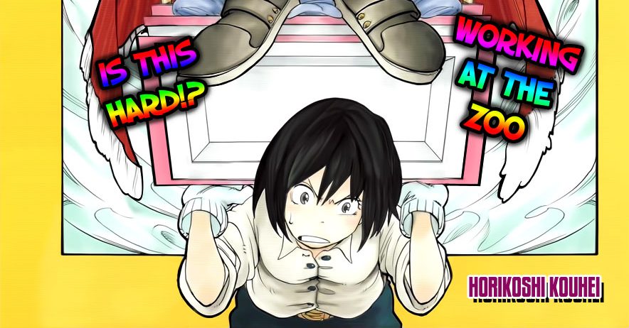 Before we get started, want to know something odd? In all of my searching, it seems like no one has translated Horikoshi’s final published one-shot, Shinka Rhapsody. I’ve sourced some raw scans, but honestly there’s nothing fair about me giving an opinion on subpar scans of something I can’t read. The main thing I can say is there’s definitely a running theme in his work about transhumanism, or at least mutant humans in the broad sense of things. The My Villain Academia arc will sort of remind you of this. For as much as I want this to be a complete review, this work is so sparsely regarded that it isn’t even poorly translated. I think we can instead take a little trip to the zoo.